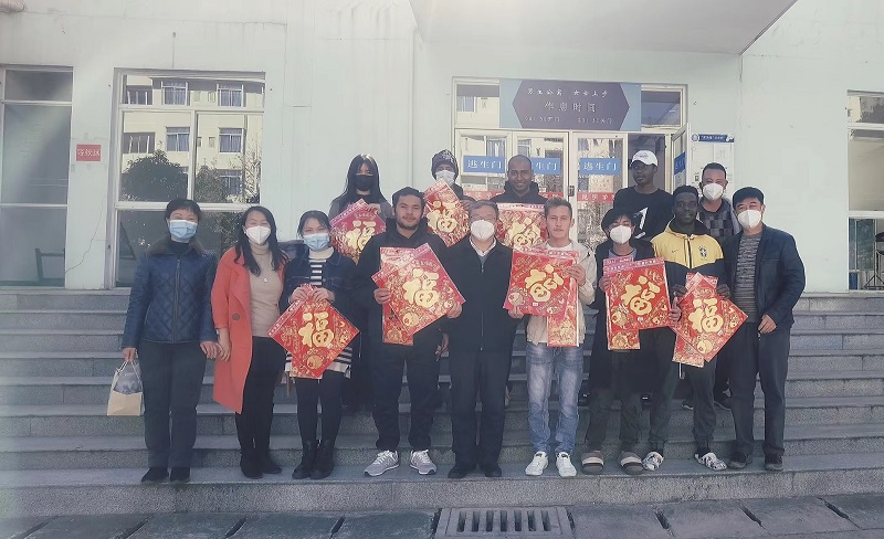 王副书记与同学们亲切交谈,细心询问了职工在校学习生活情况,叮嘱大家寒假留校期间做好自身健康防护,合理安排作息,加强体育锻炼,希望他们在中国春节的氛围中,感受中华文化的博大精深,同时也祝愿同学们在新的一年里学习进步、心想事成。职工代表用熟练的中文向公司领导和老师送上了新年祝福,对学董事长期以来给予的关心表示感谢,表示一定会利用假期好好学习,度过一个安全、充实的春节假期。