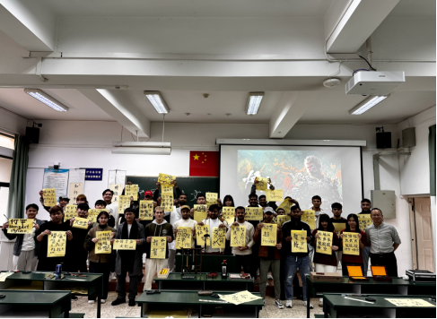 在讲座的实践环节,铉刚博士亲自示范了如何正确使用毛笔,并现场展示了中国汉字“福”“武”“龙”“悟空”等字的写法。他的笔法流畅自如,如同行云流水,令在场的职工们赞叹不已。职工们纷纷拿起毛笔,一笔一划地模仿着、体验着中国书法的独特韵味。